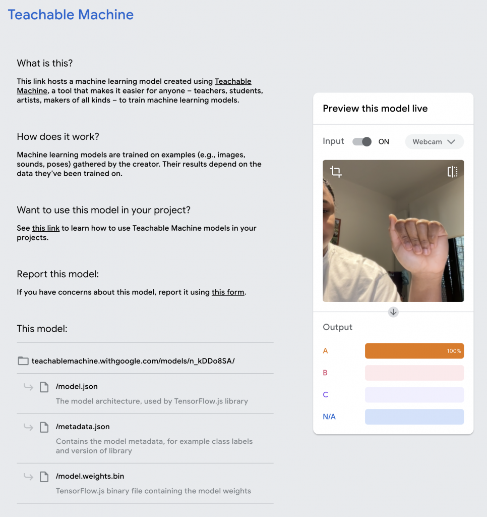 Link to the model – https://teachablemachine.withgoogle.com/models/n_kDDo8SA/